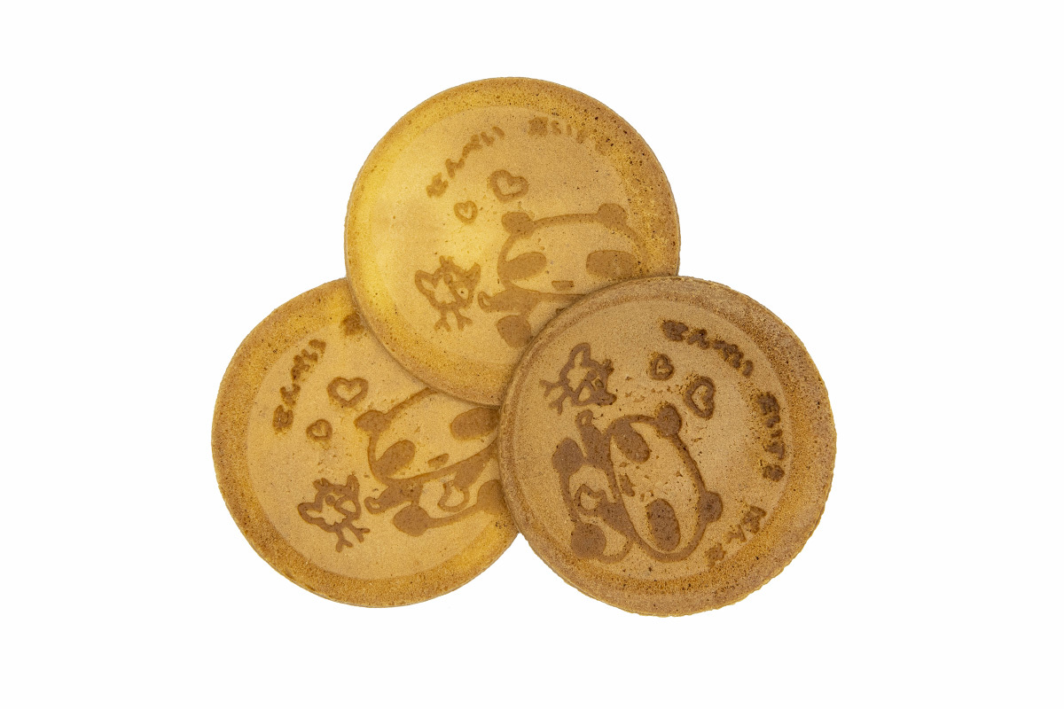 当店製造品の中でも人気商品の一つ。和歌山県産のみかん蜂蜜を使用することにより、口当たりが良く、味わい深いおせんべいになりました。かわいいパンダのデザインをパッケージと焼印に施し土産品として人気です。お茶菓子、おやつにどうぞ。