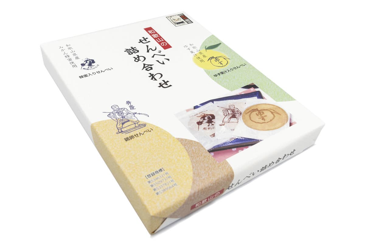 紀州田辺出身といわれる武蔵坊弁慶(むさしぼう べんけい)さんに因んだ焼き印を1枚ずつ押したたまごせんべいです。玉子をたっぷり使用した深い味わいをお楽しみ下さい。お土産用や贈答用にもお買い求めいただいています。