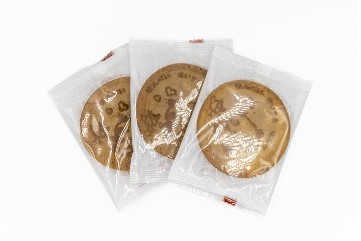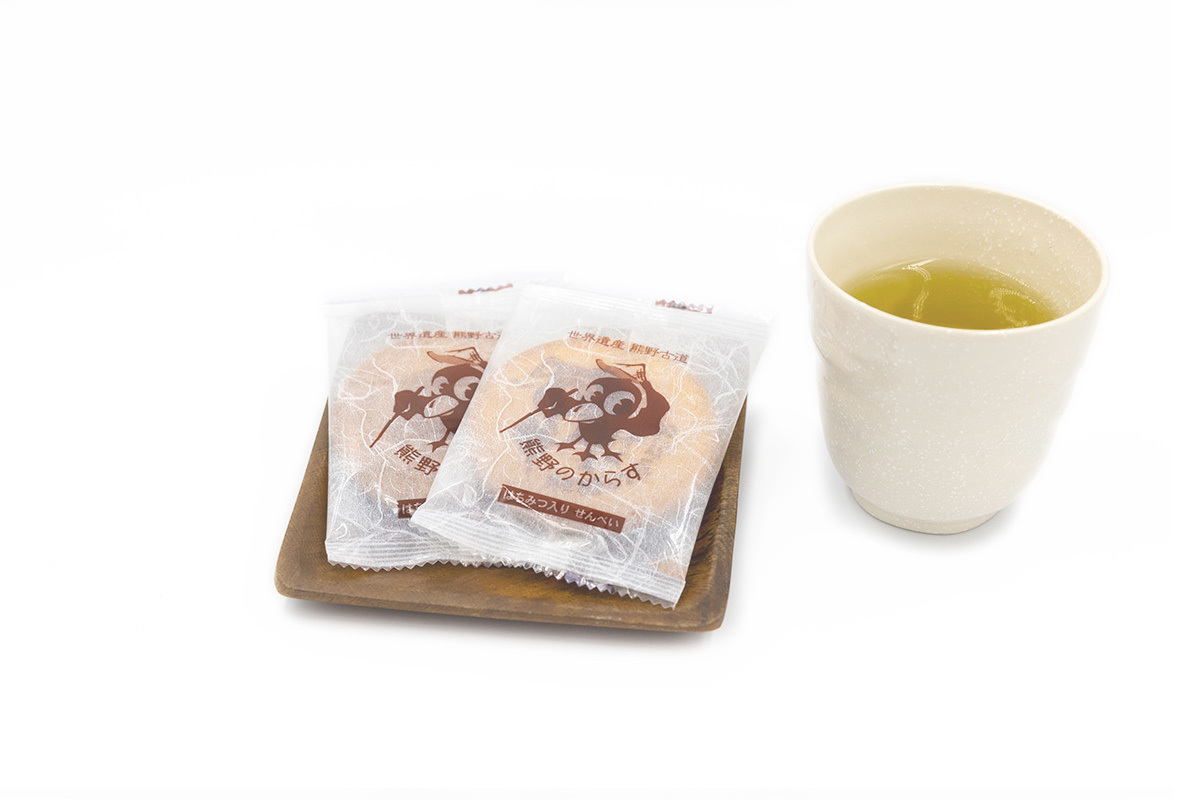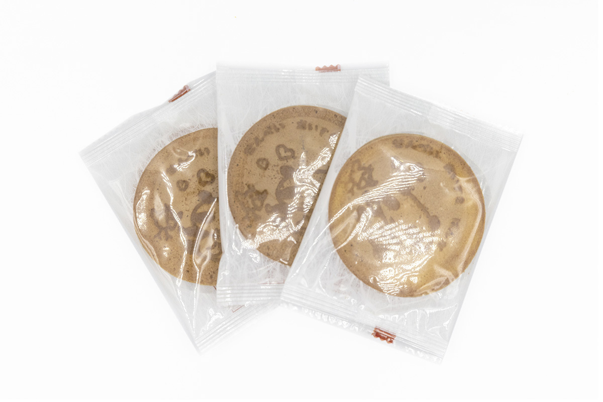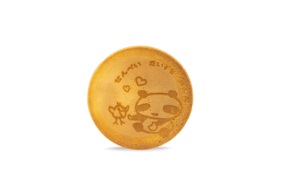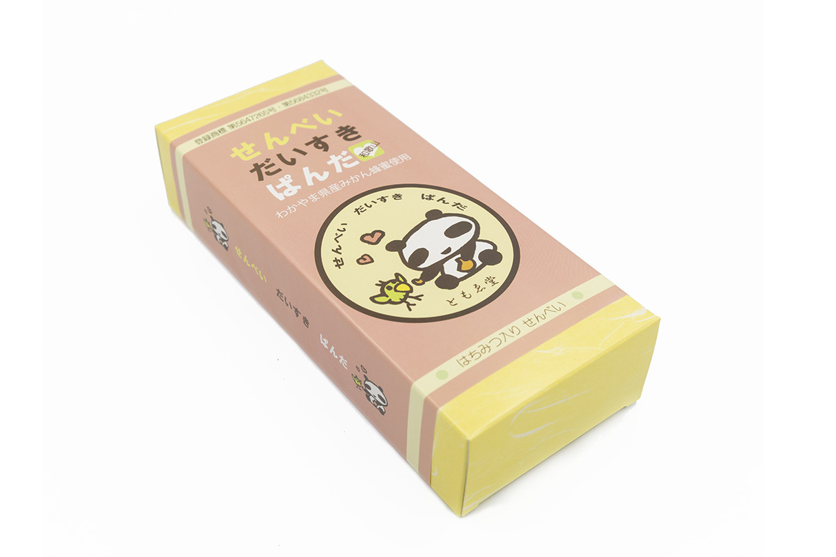 当店製造品の中でも人気商品の一つ。和歌山県産のみかん蜂蜜を使用することにより、口当たりが良く、味わい深いおせんべいになりました。かわいいパンダのデザインをパッケージと焼印に施し土産品として人気です。お茶菓子、おやつにどうぞ。