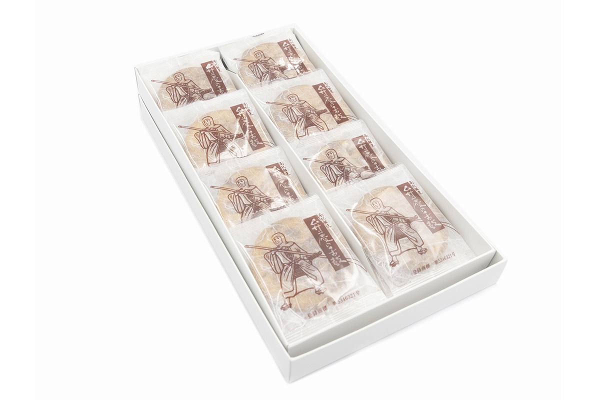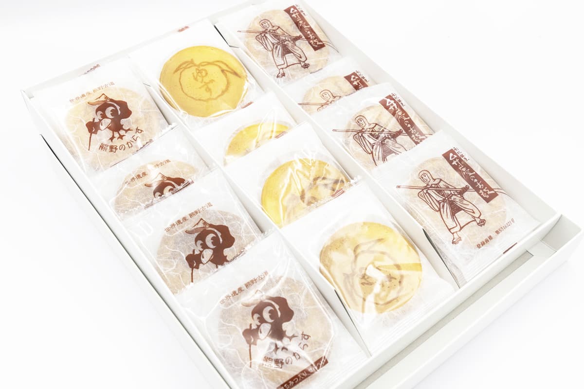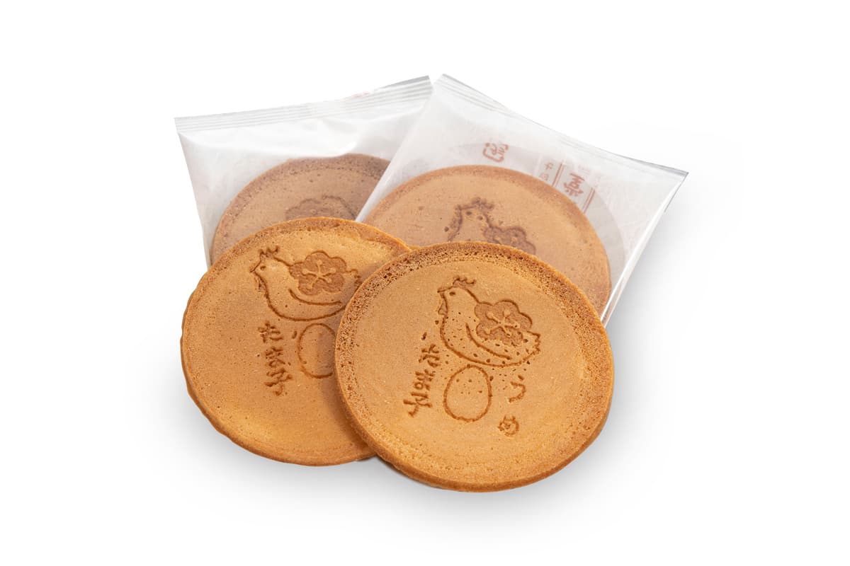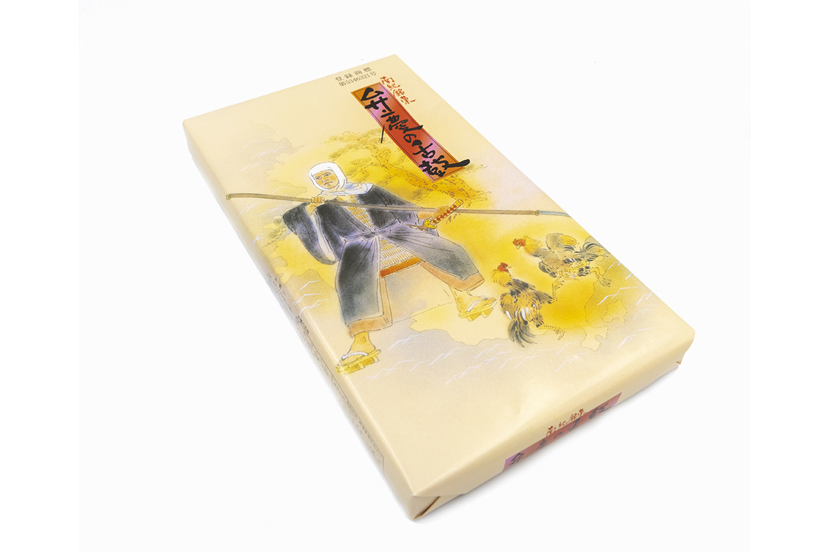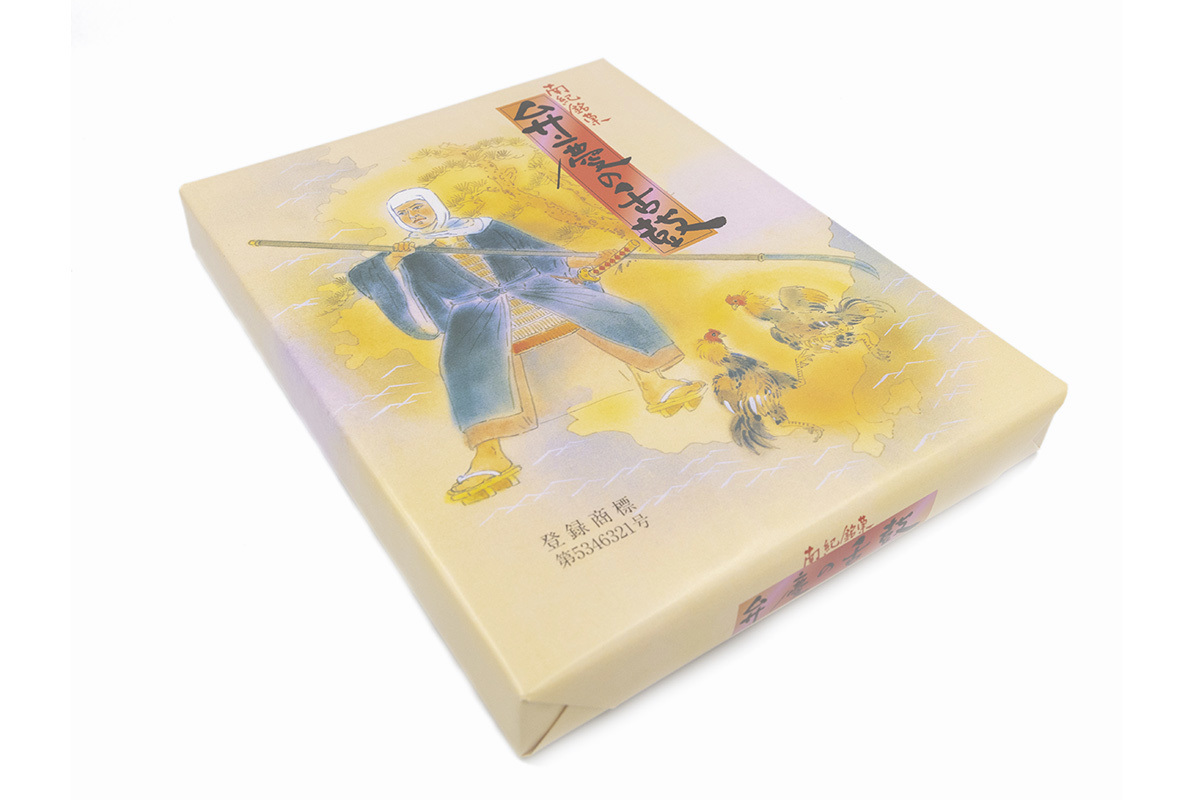紀州田辺出身といわれる武蔵坊弁慶(むさしぼう べんけい)さんに因んだ焼き印を1枚ずつ押したたまごせんべいです。玉子をたっぷり使用した深い味わいをお楽しみ下さい。お土産用や贈答用にもお買い求めいただいています。