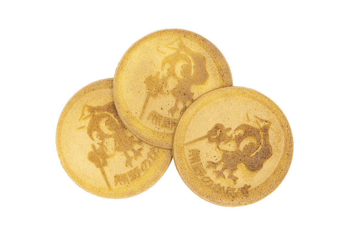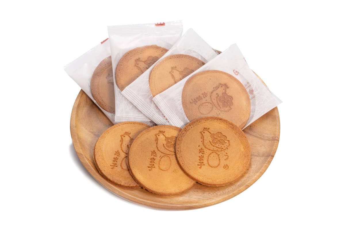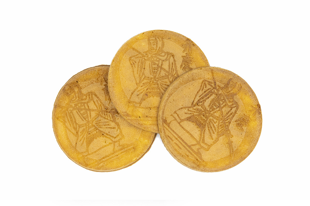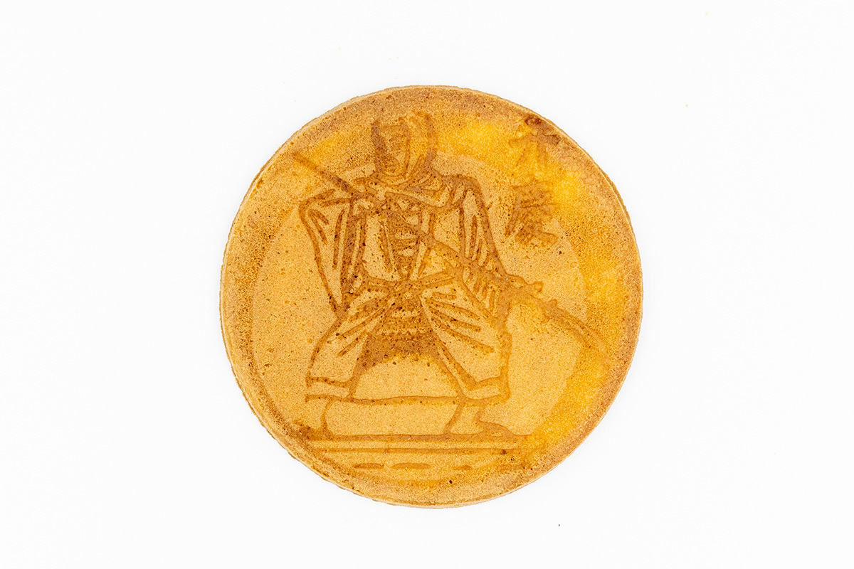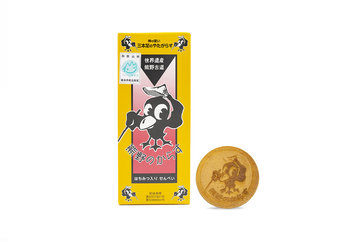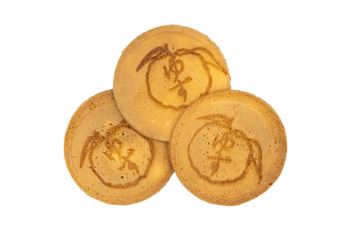 紀州田辺出身といわれる武蔵坊弁慶(むさしぼう べんけい)さんに因んだ焼き印を1枚ずつ押したたまごせんべいです。玉子をたっぷり使用した深い味わいをお楽しみ下さい。お土産用や贈答用にもお買い求めいただいています。